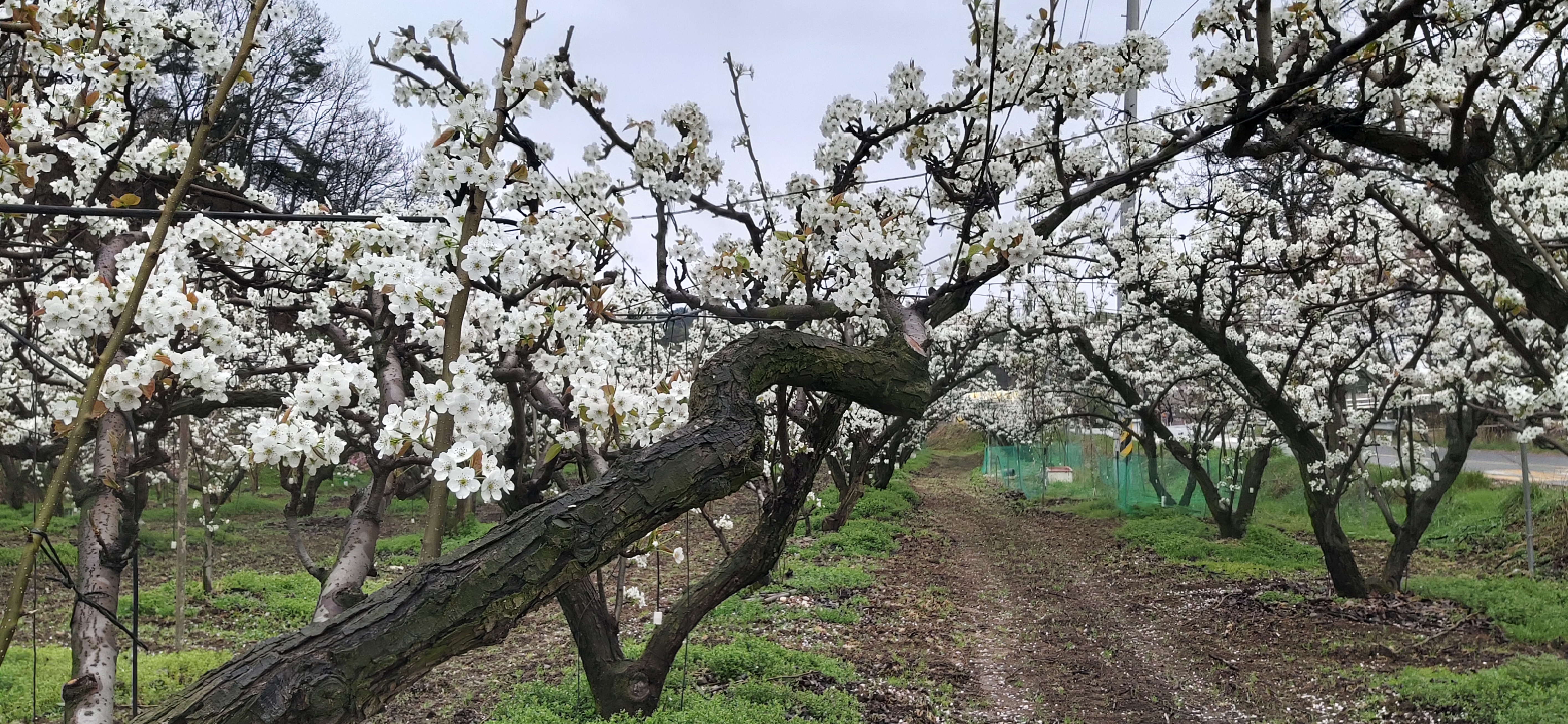 하얀 배꽃천지였다.